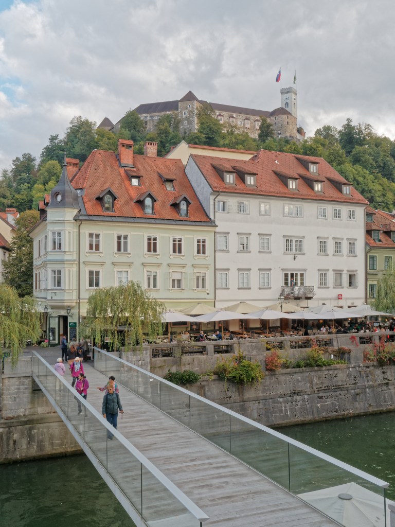 Wir haben die slowenische Hauptstadt im Oktober, also in der Nebensaison, besichtigt. Das Wetter war zwar sehr unbeständig, Regen und Sonne wechselten sich ab, aber alles in allem als Reisezeit durchaus zu empfehlen. Mit Temperaturen um die 15 bis 18 Grad war es für eine Stadterkundung sehr angenehm und auch die Touristen hielten sich in Grenzen. Lediglich bei der Burg war etwas mehr los, was uns erahnen ließ, wie es hier im Sommer zugehen muss. Wir mussten jedoch nirgends anstehen oder uns gar durchdrängeln. In den Cafés und Restaurants waren wir fast ausnahmslos die einzigen Touristen, daher mein Tipp: Besuche Ljubljana auf jeden Fall in der Nebensaison!