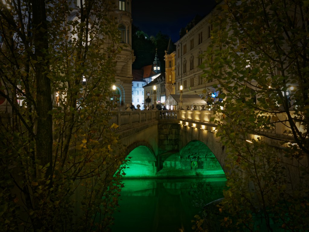 Wenn du, so wie ich, unbedingt mal Lichtspuren fotografieren möchtest, kann ich dir die Ljubljanica–Promenade sehr empfehlen. Dort fahren immer einige Radfahrer und abends mit Langzeitbelichtung kannst du diese gut einfangen: