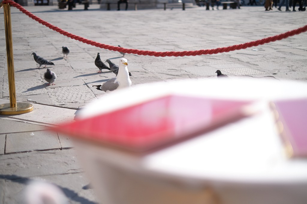 Gut zu wissen: Wer draußen sitzt, sollte sein Essen gut bewachen, da es die Tauben ebenfalls auf die Leckereien abgesehen haben.