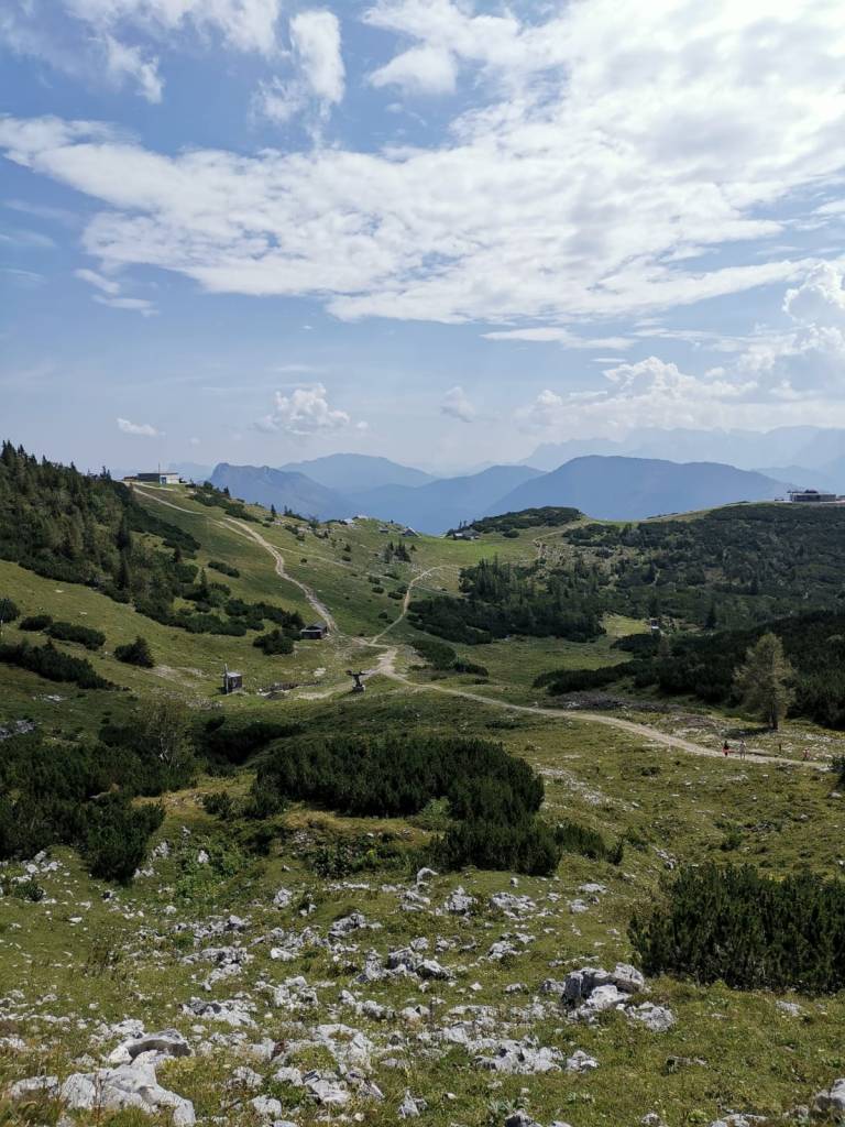 Der Feuerkogel ist der Hausberg in Ebensee und eine wunderschöne Wanderregion – sowohl für Familien mit Kindern und Genusswanderer als auch für Bergfexe geeignet. Mit der Seilbahn geht es von Ebensee aus auf 1.600 Meter Höhe. Oben angekommen kannst du dann nach Herzenslust wandern, den Ausblick genießen, schlemmen oder auch einfach nur die Seele baumeln lassen. Besonders empfehlen kann ich die Wanderung von der Bergstation zur Riederhütte. In leichtem Bergauf und Bergab erreichst du auf diese Weise die Hütte in rund 1 h 45 min. Eine sehr schöne Wanderung, die auch mit Kindern machbar ist.