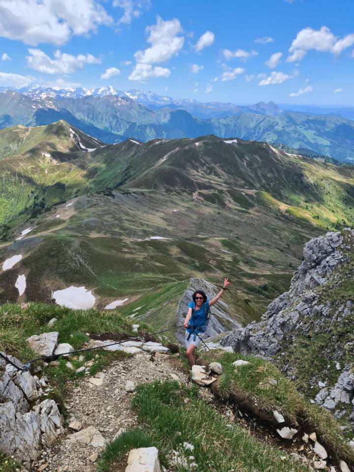 Was du hier auf dem Bild nicht sehen kannst: Dass selbst kleine Kletterpassagen oft eine Herausfprderung für mich darstellen und einen Schritt (oder 2 oder 3) aus meiner Komfortzone bedeuten. Anschließend bin ich aber immer sehr stolz auf mich, meine Ängste überwunden zu haben. Und für den Ausblick am Draugstein hat es sich allemal gelohnt.