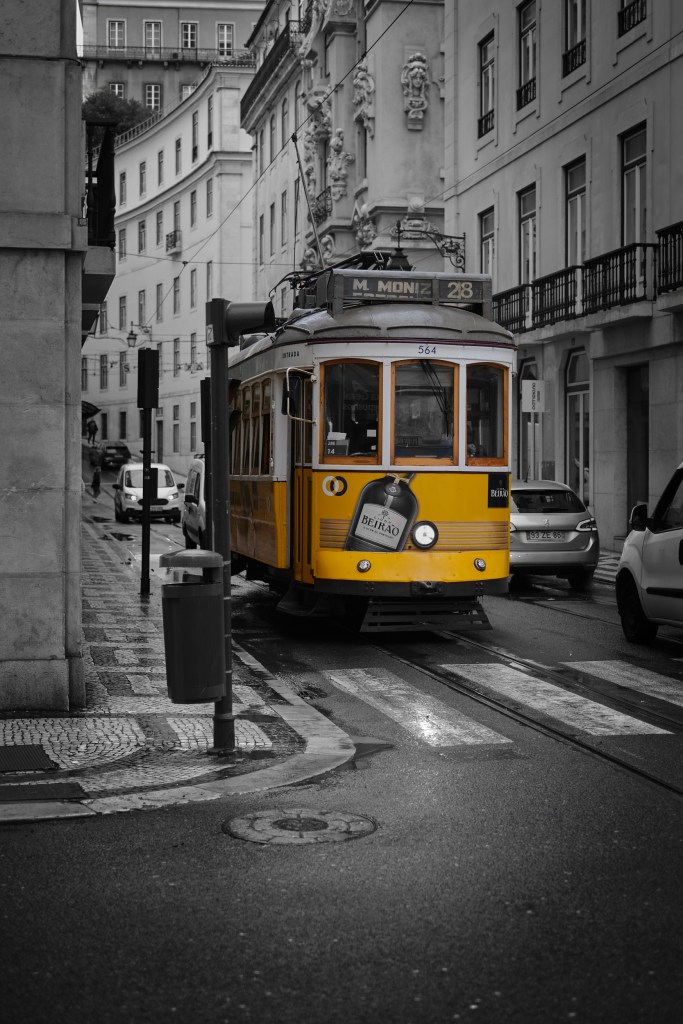 Sie ist die wohl berühmteste Straßenbahn der Welt. Eine Fahrt mit ihr wird in sämtlichen Reiseführern und auf Reiseblogs als „Sehenswürdigkeit“ und Must-Do in Lissabon angepriesen. Leider ist sie selbst in der Nebensaison druchgehend heillos überfüllt, sodass sie als Transportmittel eher weniger in Frage kommt, als Fotomotiv macht sie sich hingegen sehr gut. 🙂