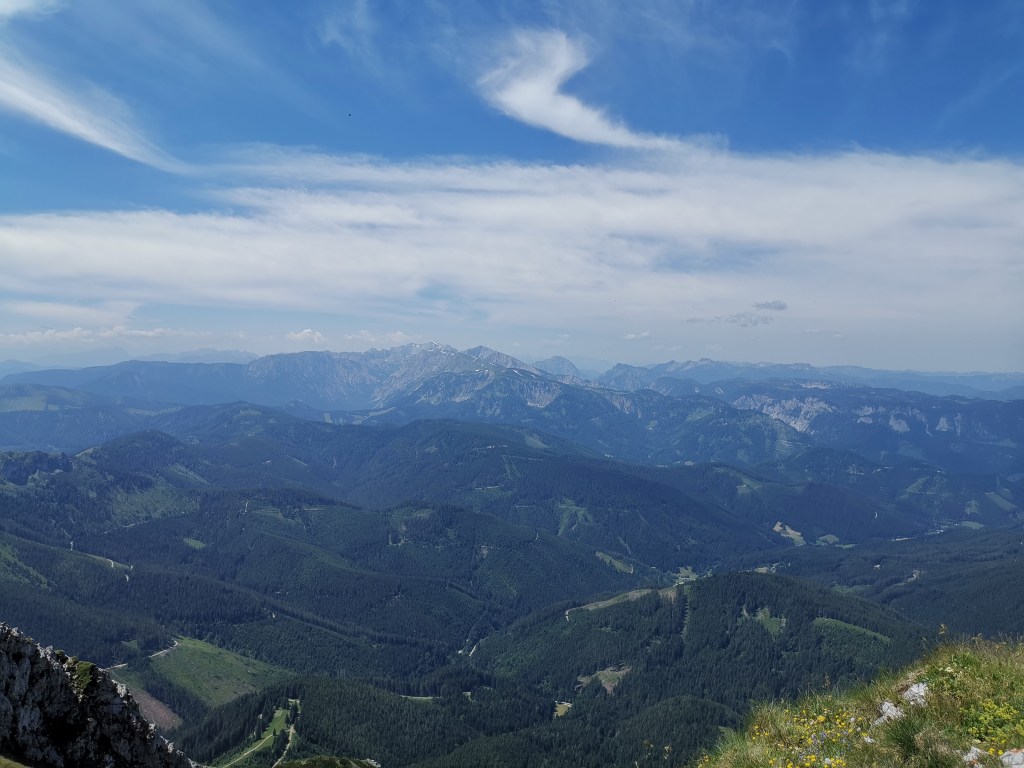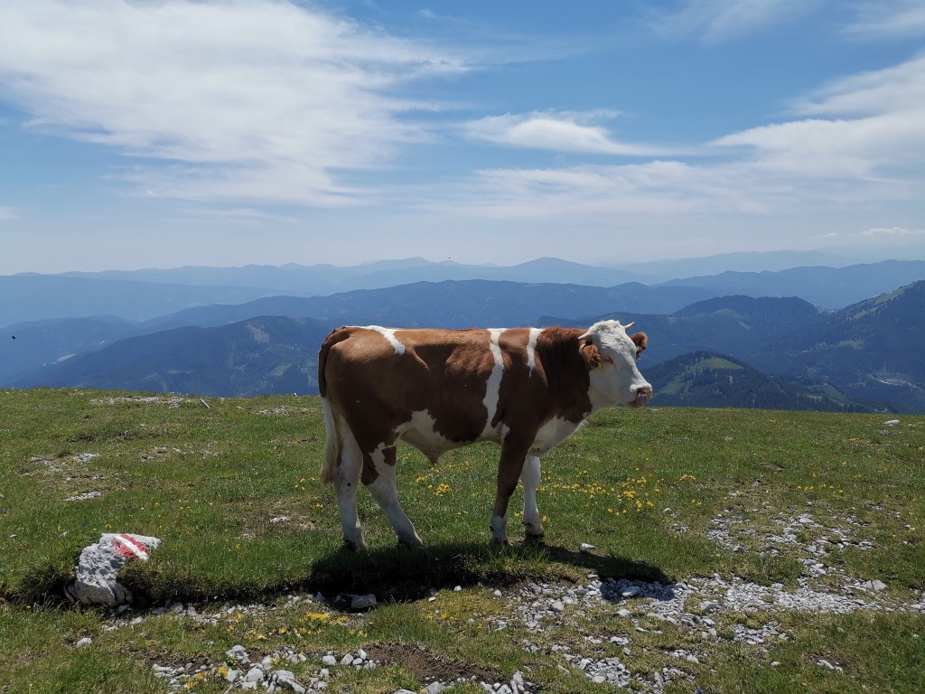 Während es unten im Ort sowie in Wien heiße 30 Grad hat, ist es hier auf 1.981 Metern überaus angenehm. Es geht sogar ein Wind und ich zücke meine Weste – love it!
