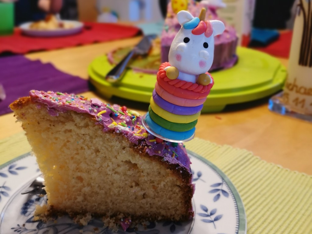 Und falls du dich schon mal gefragt hast, was ich eigentlich so mache, wenn ich gerade nicht reise, blogge oder coache: Ich esse Einhörner. 😛 Anlässlich des 4. Geburtstags meiner Nichte gab es eine pinke Einhorn-Sky-Torte. Und meine Nichte hat mir feierlich mit den Worten „Und Tante Julia bekommt das Einhorn“ das Stück überreicht. <3 Da ging mir echt das Herz auf. ❤