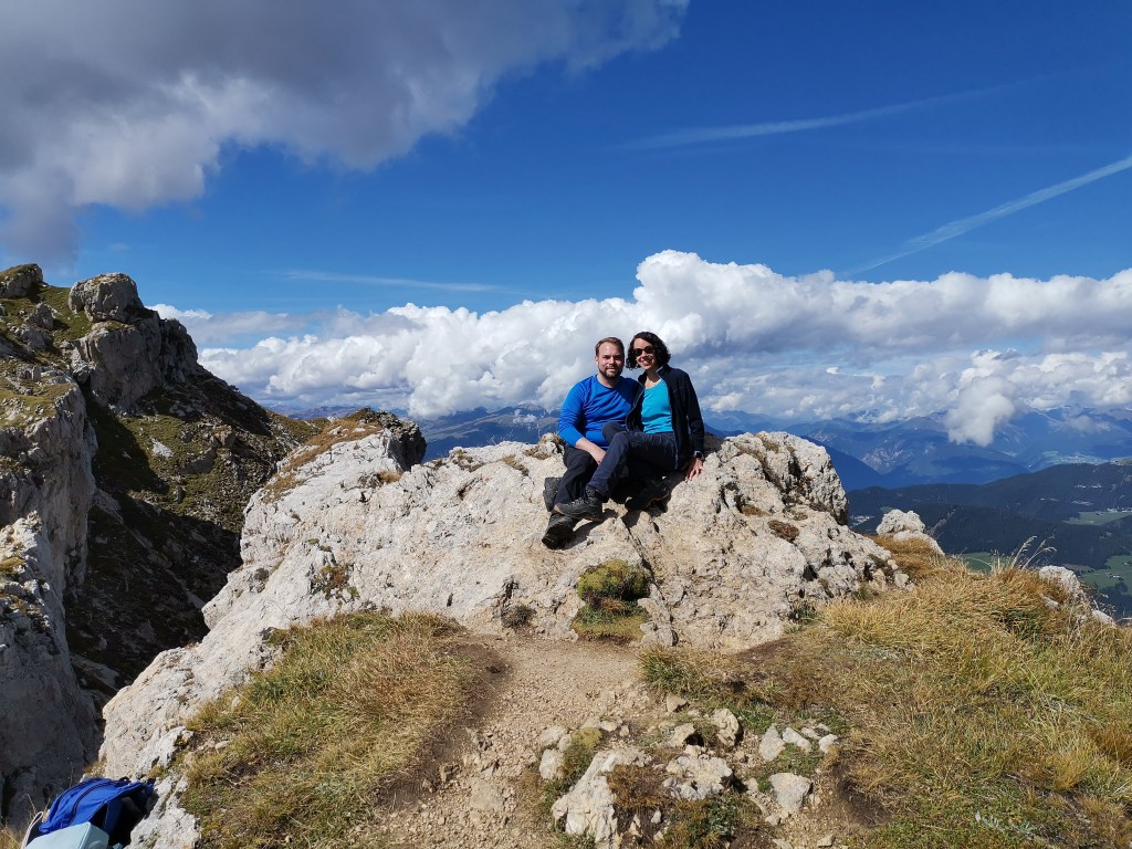 Auch als Selbstständige muss man mal blau machen (dürfen). Daher haben wir unseren Hochzeitstag im September als Anlass für eine kurze Auszeit in Südtirol genommen. Ich bin komplett in Blau gekleidet, mein Mann zumindest oben und auch unsere Rucksäcke sind beide blau (siehe links unten). 😀 Ob wir blau wohl mögen? 😀