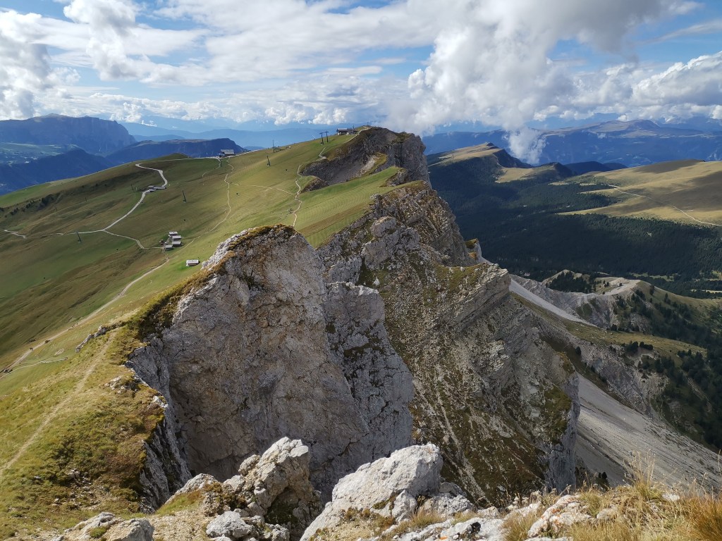 Ausblicke gab es aufgrund der zahlreichen Wanderungen viele, daher war die Entscheidung nicht ganz so einfach, aber letztendlich habe ich mich für dieses Bild von der Seceda in Südtirol entschieden. Es war zwar leider – wie erwartet – sehr touristisch, aber dennoch ein absolutes Highlight!