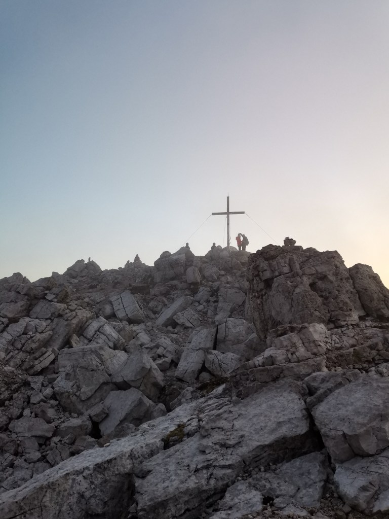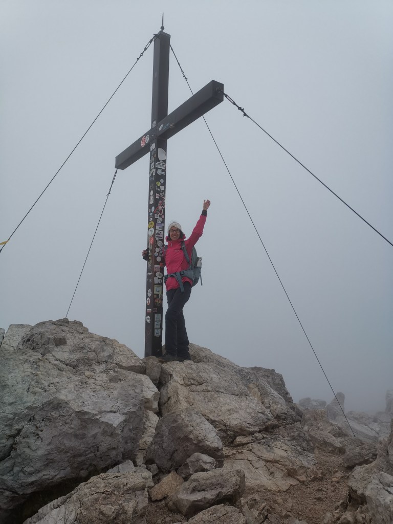 Ich nutze die Zwischenzeit, um ein Gipfelkreuzfoto zu machen.