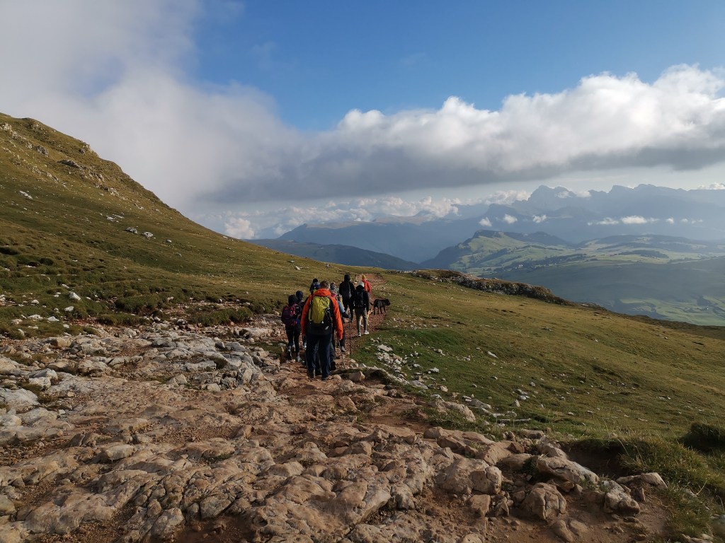 Nach der Stärkung im Schlernhaus treten wir zusammen den Rückweg zur Saltnerhütte an, wo uns der Shuttlebus abholt und zurück ins Tal bringt.