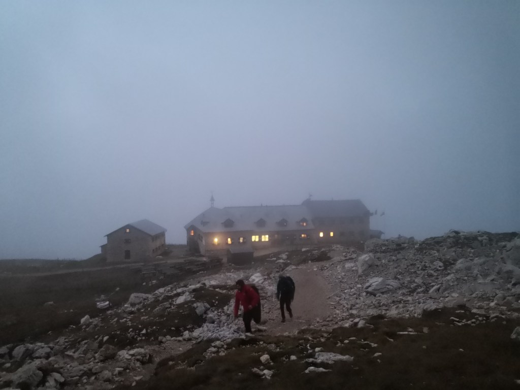 Als wir das Schlernhaus für den letzten Anstieg verlassen, dämmert es bereits. Meine Stirnlampe brauche ich daher nun nicht mehr. Es herrscht dichter Nebel. Kurz überkommt mich eine vage Voranhnung, ich weise den Gedanken jedoch sogleich wieder von mir und erinnere mich an Egons zuversichtliche Worte von vor gut einer Stunde.