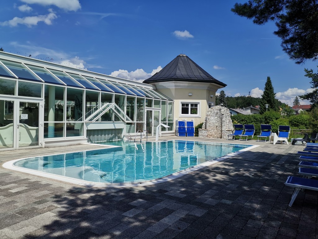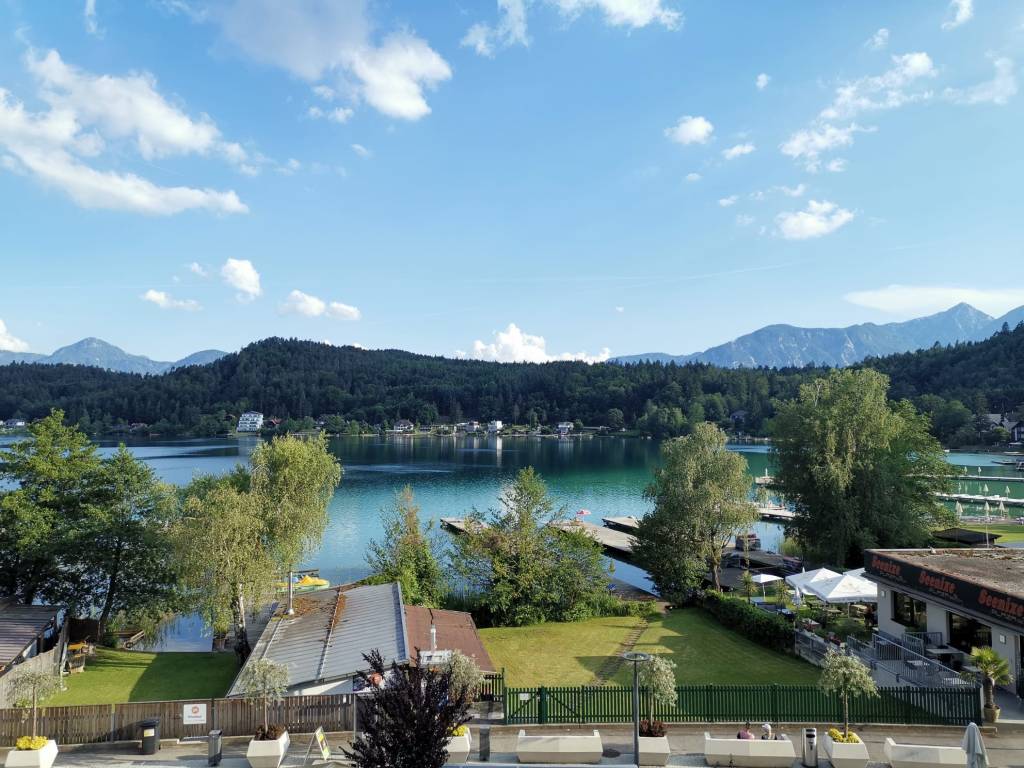 Untergebracht waren wir im Seehotel Mori* in Sankt Kanzian am Klopeiner See. Dieses verfügt über ein Haupthaus mit Indoor- und Outdoor-Pool, Garten, Tennisplätzen, Fitnessraum und Wellnessbereich sowie ein Nebenhaus, das etwa 5 Gehminuten entfernt ist, dafür aber Zimmer mit Seeblick hat. Wir waren im Letzteren untergebracht, was perfekt für uns gepasst hat.