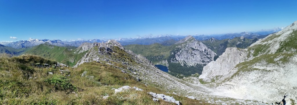 Ich entscheide mich für die Weißgrubenscharte und es folgt ein leichter Anstieg (ca. 360 Hm). Der Ausblick ist wirklich atemberaubend schön.