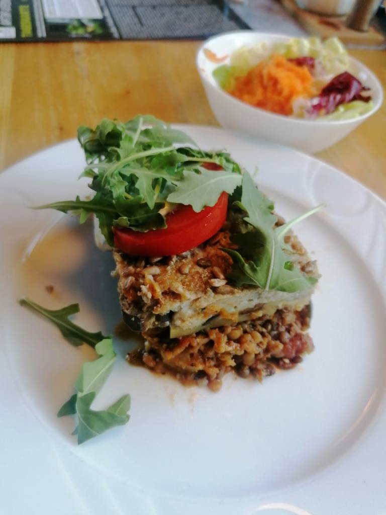 Abends, genauer gesagt eben um 18:30 Uhr, wird jeweils ein veganes 4-Gänge-Menü bestehend aus Suppe, Salat, Hauptspeise und Nachspeise, serviert. Dieses ist im Halbpensionspaket inkludiert. Alternativ kannst du die Speisen jedoch auch einzeln bestellen, also z.B. nur Suppe und Hauptspeise oder Hauptspeise und Nachspeise (und diese dann einzeln bezahlen).